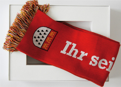 mit Kölner Stadtwappen und gestickter Signatur